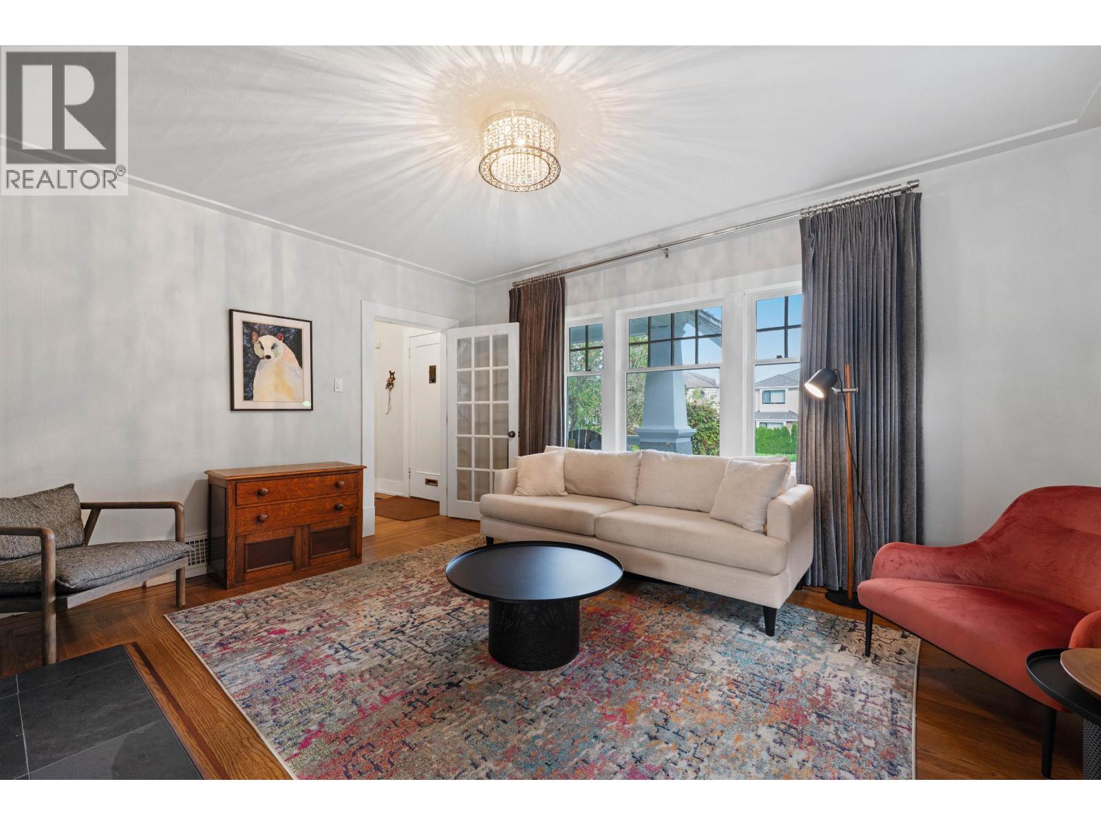FAMILY HOME on a level 50' x 122' lot in a prime location! This renovated character home blends timeless charm with modern updates. The open kitchen features white cabinetry, stone counters & stainless steel Bosch appliances, flowing into a bright family room. French doors off the dining and family rooms open to sunny south-facing decks and garden. A formal living and dining room with a fireplace offers classic appeal, while the main floor also includes a home office/bedroom. Upstairs, you'll find 3 bedrooms & 2 bathrooms, with a 4th bedroom and a kids' family room on the lower level. Steps to transit & the Arbutus Greenway-bike, walk or bus to Kerrisdale, Kitsilano, South Granville, Safeway, Loblaws City Market & Arbutus Club. School Catchment: Trafalgar Elementary & Prince of Wales Secondary.